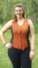 Chocolate vest with black piping, side laces, and buck stitched hole