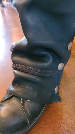 ![]() Added Fat Boy Sidelaces | ![]() Chap Pocket and Conchos | ![]() Whip Stitched Edges |